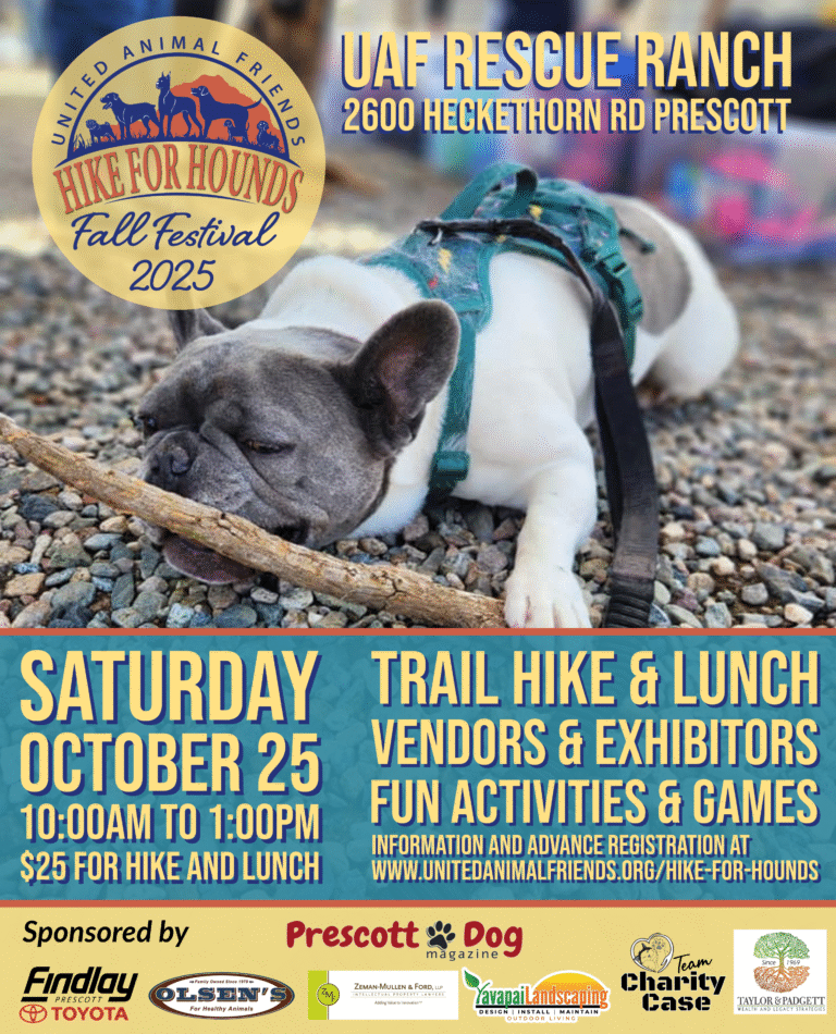 Hike the Peavine Trail next to the United Animal Friends Rescue Ranch, then return for lunch on our shaded lawn. $25 entry fee includes: